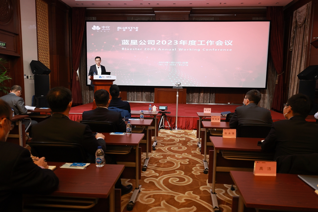 郝志剛對藍星公司2022年存在的問題進行剖析,對2023年工作進行重點部署,要求廣大干部職工認真貫徹落實中國中化2023年度工作會議和李凡榮董事長重要講話精神,聚焦化工新材料和特種化學品主業,充分估計面臨的形勢和困難,堅持穩中求進總基調,奮力完成年度各項經營目標,全面夯實公司高質量發展根基。