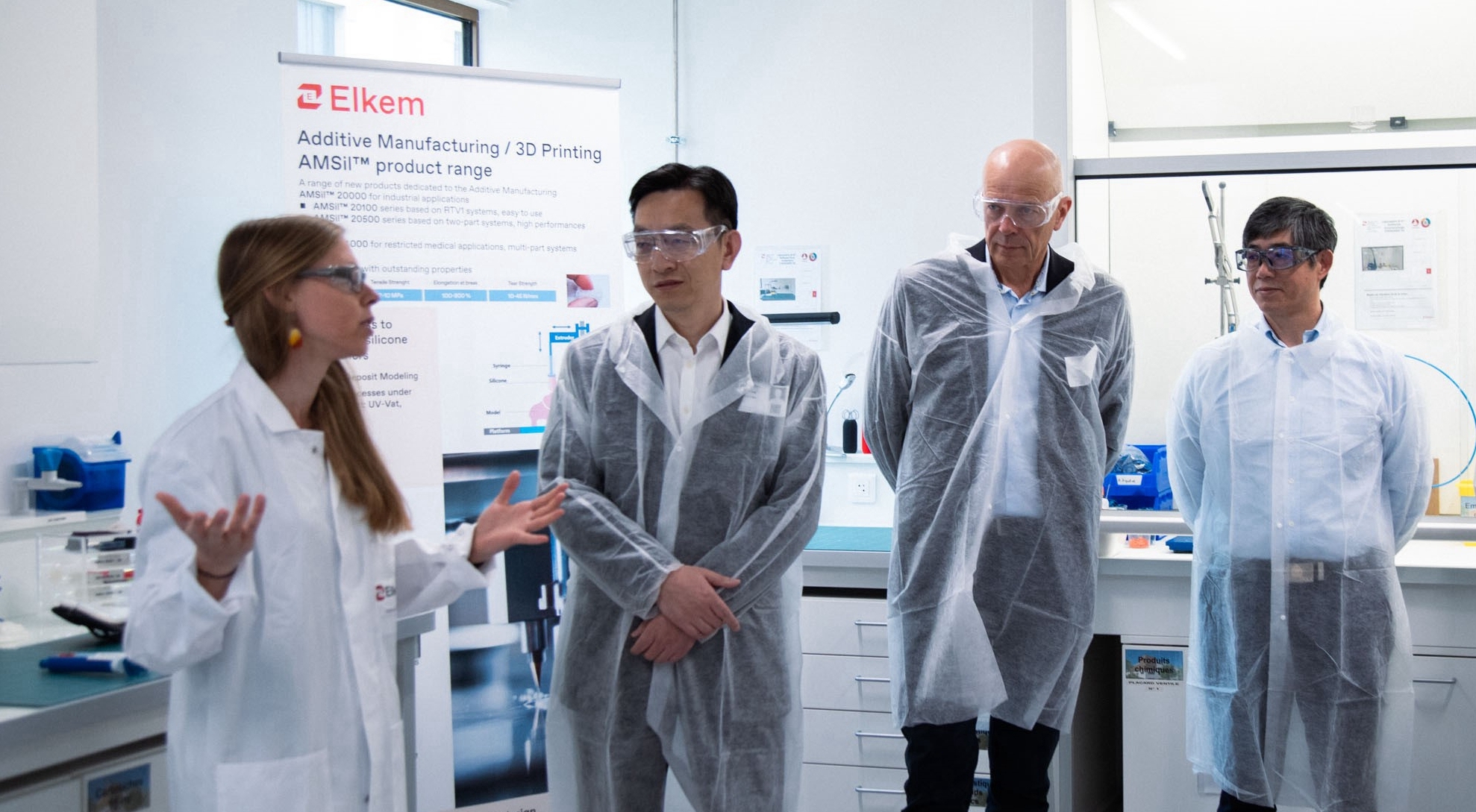 郝志剛實地參觀了3D打印、產品應用開發、分析測試等實驗室,深入了解了藍星埃肯有機硅在歐洲、中東和非洲地區的生產經營情況和發展戰略,特別是在實現綠色轉型和國際碳中和目標的推動下公司的發展定位。現場見證了當地團隊開發的最新產品和創新工藝,并與研發人員深度溝通,闡明有機硅應用對現代社會發展的重要性,鼓勵員工研發更多產品滿足人們對美好生活的追求。