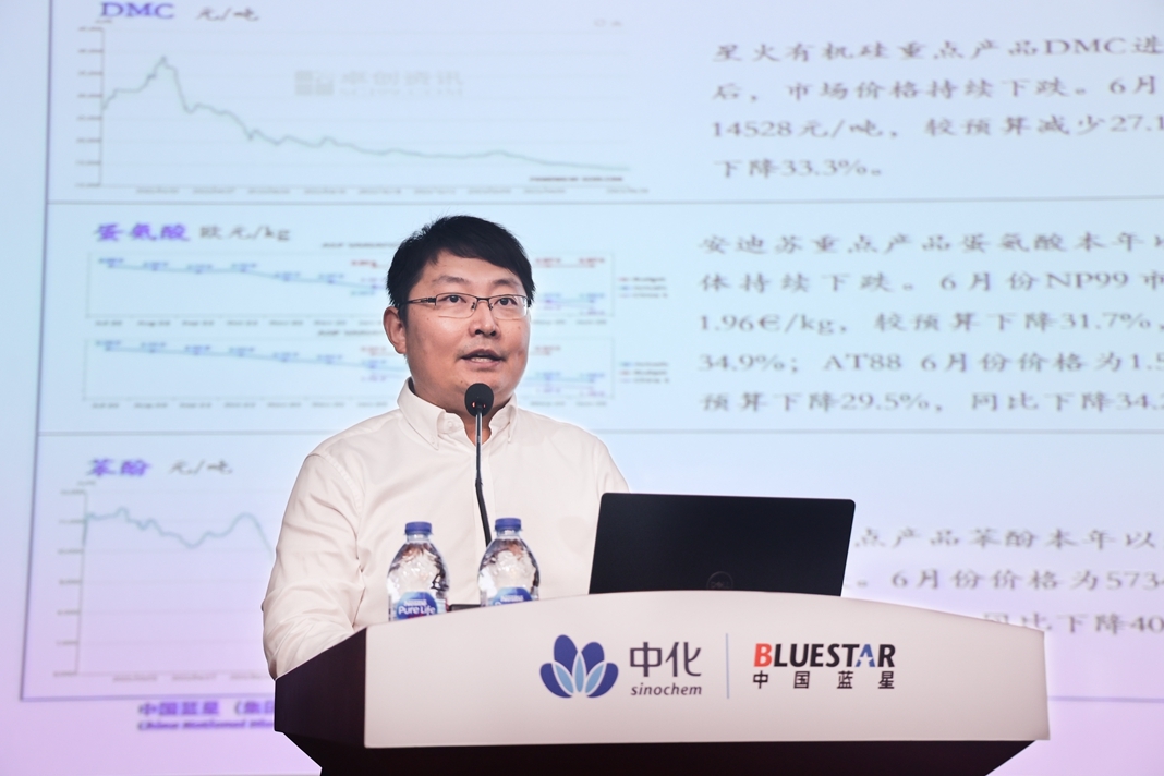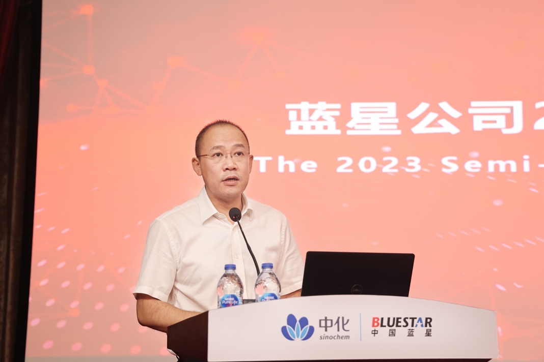7月27日,藍星公司在京召開2023年中工作會議。會議以習近平新時代中國特色社會主義思想為指導,認真貫徹落實中國中化年中工作會議精神,總結上半年工作情況,結合當前經濟形勢,部署下半年重點工作。