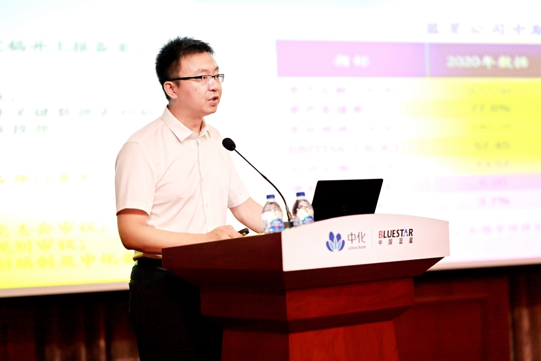 藍星公司黨委書記、董事長郝志剛以《黨建統領 銳意改革 提質增效 全力打造全球領先的化工新材料和特種化學品企業》為題作重要講話。藍星公司黨委副書記、副總經理董大川主持會議。藍星公司總部全體員工、各級直屬企業領導班子和各部門主要負責人、海外企業在華機構負責人及所屬企業管理團隊共268人分別在主會場和視頻分會場參會。