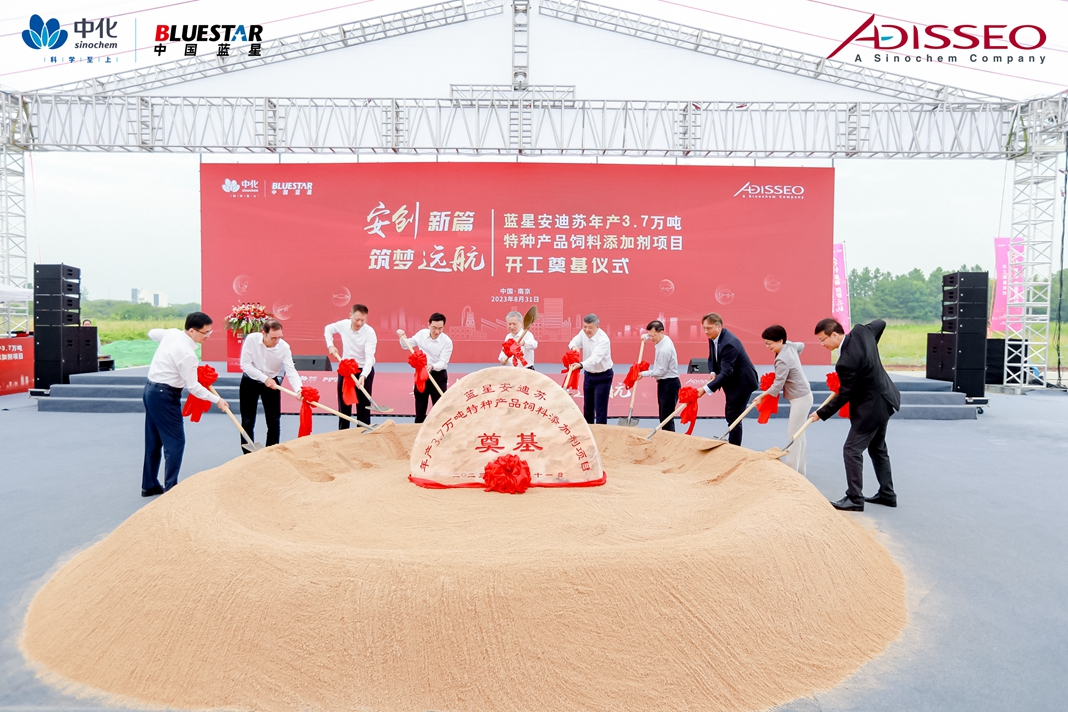 8月31日上午,藍(lán)星安迪蘇3.7萬噸/年特種產(chǎn)品飼料添加劑項目(以下簡稱FOSIC項目) 開工奠基儀式在位于南京溧水區(qū)的南京國家農(nóng)業(yè)高新技術(shù)產(chǎn)業(yè)示范區(qū)(以下簡稱“農(nóng)高區(qū)”) 舉行。中國中化副總經(jīng)理、黨組成員陽世昊,南京市委副書記、南京國家農(nóng)高區(qū)黨工委(籌) 書記沈文祖,溧水區(qū)委書記、南京國家農(nóng)高區(qū)黨工委(籌) 副書記管委會(籌)主任張?zhí)N,藍(lán)星公司黨委書記、董事長、藍(lán)星安迪蘇董事長兼CEO郝志剛等出席儀式并致辭。江蘇省委、南京市委市政府、溧水區(qū)委區(qū)政府主要領(lǐng)導(dǎo)及各相關(guān)部門負(fù)責(zé)人、企業(yè)代表等出席活動。